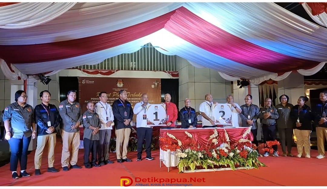 Pengambilan nomor urut disaksikan komisioner KPU dan Badan Pengawas Pemilu (Bawaslu) Papua, Forkompimda serta Pasangan masing masing-masing calon bersama seluruh pendukung dan simpatisan.