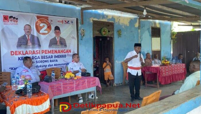 Sorong, Detikpapua.Net – Keluarga besar Imekko se-Sorong Raya, secara resmi mendeklarasikan dukungan untuk Pasangan calon gubernur dan wakil gubernur nomor urut 2 Gabriel Asem – Lukman Wugaje (GAUL).
