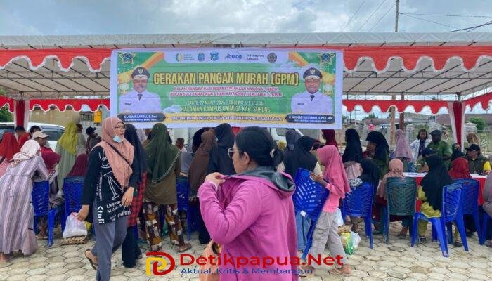 Kabupaten Sorong, Detikpapua.Net – Sebagai bentuk kepedulian terhadap masyarakat sekaligus mendekati Hari Besar Keagamaan Nasional dan bulan suci Ramadhan 1446 H/2025, Pemerintah Provinsi Papua Barat Daya mengadakan Gerakan Pangan Murah (GPM).