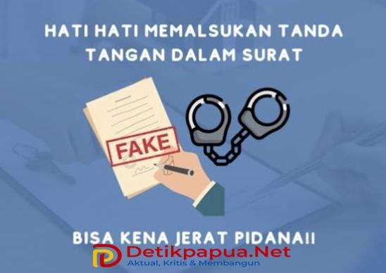 Sorong, Detikpapua.Net – Seorang oknum Aparatur Sipil Negara (ASN) di Lingkup Badan Kesatuan Bangsa dan Politik (Kesbangpol) Provinsi Papua Barat Daya berinisial YC dilaporkan ke polisi karena diduga melakukan pemalsuan tanda tangan dokumen usul kenaikan pangkatnya.