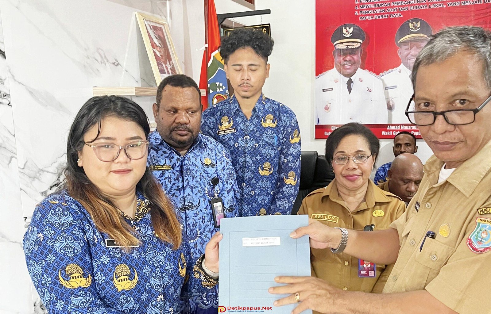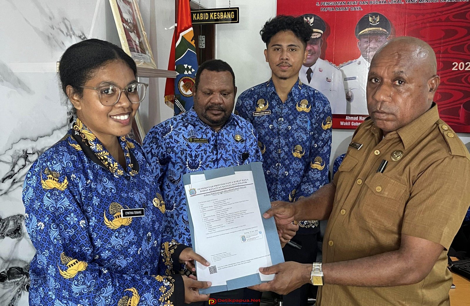 Sorong, Detikpapua. Net – Sebanyak 31 Calon Aparatur Sipil Negara (CASN) resmi menerima nota tugas dan surat penempatan di lingkungan Badan Kesbangpol Provinsi Papua Barat Daya. Nota tugas tersebut diserahkan langsung oleh Gubernur Papua Barat Daya Elisa Kambu, S.Sos yang diwakili Kepala Badan (Kaban) Kesbangpol Dr. Sellvyana Sangkek, SE.,M.Si, Selasa (17/06/2025).