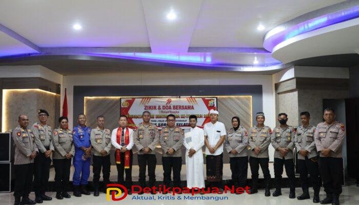 Teminabuan, Detikpapua.net – Dalam rangka memperingati Hari Bhayangkara ke-79 Tahun 2025, Polres Sorong Selatan menggelar kegiatan Zikir dan Doa Bersama lintas agama dengan mengusung tema “Polri Untuk Masyarakat”. Kegiatan ini berlangsung khidmat di Aula Sembra Mapolres Sorong Selatan, Rabu (18/6/2025).