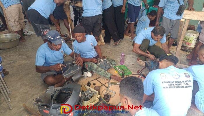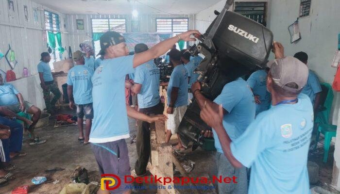 Yenanas, Detikpapua.Net– Pelatihan bimbingan teknis (bimtek) bongkar pasang mesin tempel yang digelar oleh Dinas Perikanan Kabupaten Raja Ampat di Kampung Yenanas, Distrik Batanta Selatan, mencatat pencapaian luar biasa. Dalam dua hari pelaksanaan, total sembilan unit mesin tempel rusak berhasil diperbaiki, menjadikannya pelatihan dengan jumlah perbaikan terbanyak dalam sejarah kegiatan serupa di willayah Raja Ampat.