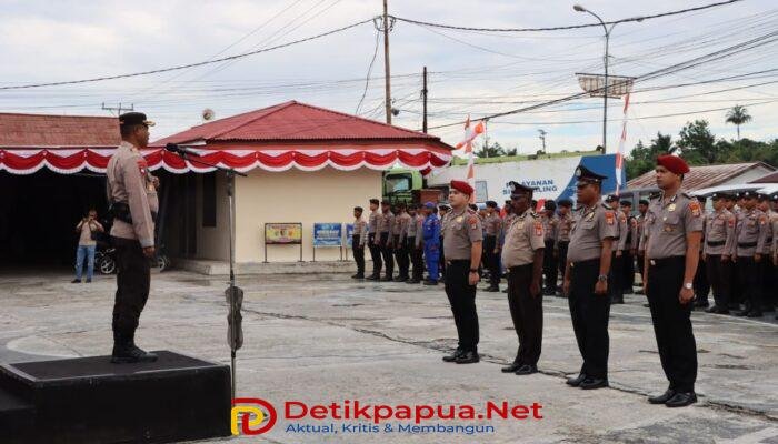 Kapolres Molle Pimpin Upacara Korps Raport Kenaikan Pangkat 15 Personil Polres Sorong Selatan
