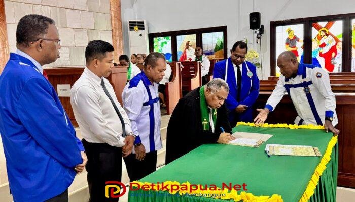 Raja Ampat, Detikpapua.Net – Forum Generasi Muda (FGM) Gereja Kristen Injili (GKI) di Tanah Papua resmi melantik Panitia Kongres II yang akan diselenggarakan pada Oktober 2025 mendatang di Kabupaten Raja Ampat. Pelantikan dilakukan oleh Sekretaris Sinode GKI di Tanah Papua, Pdt. Daniel J. Kaigere, M.Th, usai ibadah pada Minggu, 27 Juli 2025, di Gereja Alfa Omega Waisai, Klasis Raja Ampat.