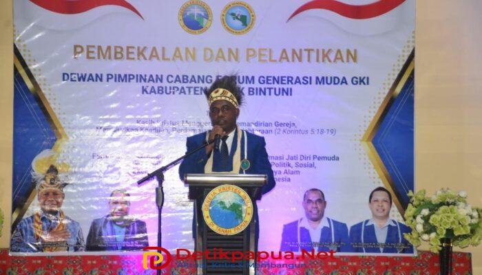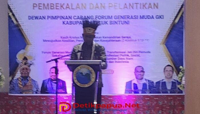 Selanjutnya sambutan Bupati Teluk Bintuni yang memberikan apreasi dan dukungan atas pelantikan FGM GKI Kabupaten Teluk Bintuni. Tentunya FGM GKI akan menjadi organisasi mitra bagi pemerintah. Ditambahkannya bahwa diera kontemporer ini, tantangan yang dihadapi gereja dan dunia semakin kompleks, yang mencakup isu sosial, ekonomi, budaya, teknologi hingga lingkungan hidup. Untuk menyikapi zaman yang bergerak makin cepat dan dipenuhi dinamika ini, ia berharap pemuda gereja tidak boleh hanya aktif dalam kegiatan ibadah semata, tetapi harus mampu menjawab berbagai tantangan masa kini dengan bertransformasi menjadi agen perubahan yang memberi jawaban nyata secara kontekstual dan relevan. Panggilan zaman ini harus dijawab oleh generasi muda gereja dengan cerdas, kritis dan penuh tanggung jawab, papar Bupati Manibuy.