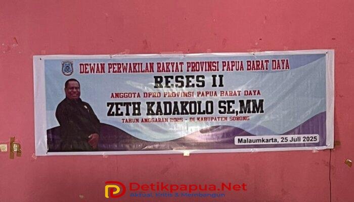 Sorong, Detikpapua.Net – Dalam rangka melaksanakan tugas konstitusional sebagai wakil rakyat, Ketua Komisi I DPRD Provinsi Papua Barat Daya, Zeth Kadakolo, SE., MM, menggelar kegiatan reses masa sidang II tahun 2025 bertempat di Kampung Malaumkarta, Distrik Makbon, Kabupaten Sorong, Jumat (25/07/2025).
