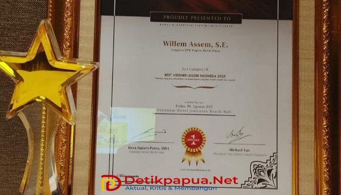 Pada kesempatan ini, penghargaan bergengsi diberikan kepada Willem Assem, S.E., Anggota DPR Provinsi Papua Barat Daya, sebagai bentuk apresiasi atas kepemimpinan yang visioner, inovatif, serta mampu membangun kolaborasi erat dengan berbagai pihak, baik eksekutif maupun masyarakat sipil di Kabupaten Tambrauw, Kabupaten Maybrat, hingga tingkat provinsi.