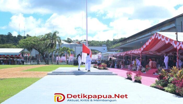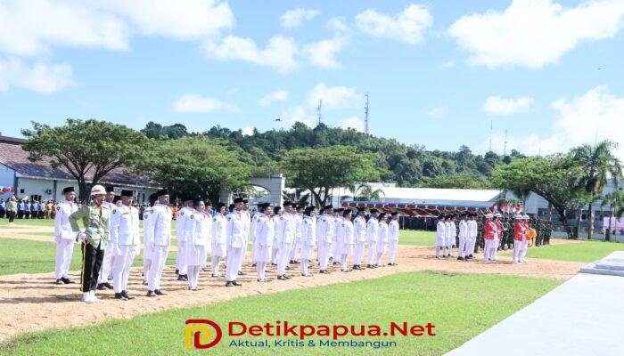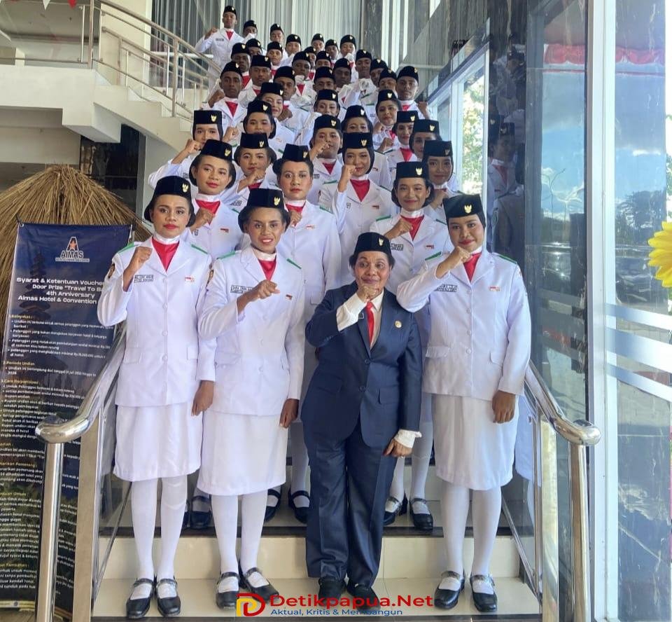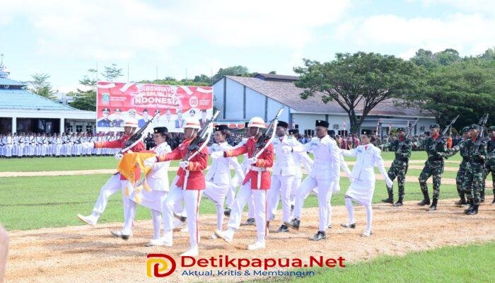 Anggota Paskibraka Provinsi Papua Barat Daya sukses melaksanakan tugas mengibarkan Bendera Merah Putih di Lapangan Komando Armada TNI AL, Minggu (17/08/2025). Foto/Yohanes Sole
