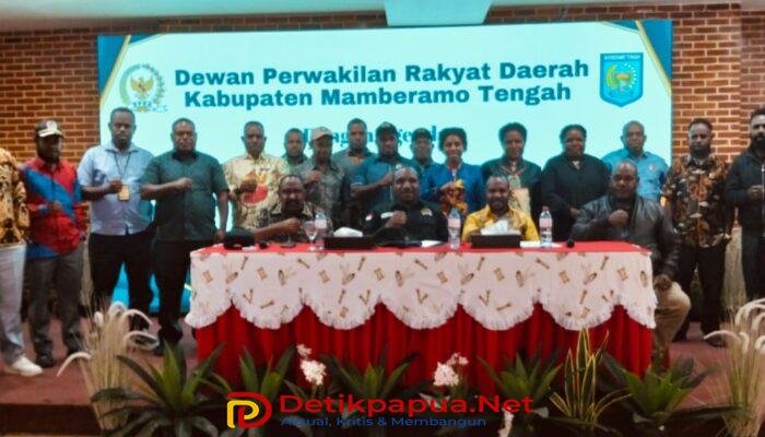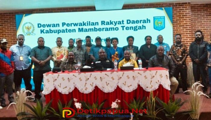 Wamena, DetikPapua.Net – Dewan Perwakilan Rakyat Daerah (DPRD) Kabupaten Mamberamo Tengah menggelar Rapat Alat Kelengkapan (Komisi & Fraksi) pada 20 Agustus 2025 di Hotel Gren Balim, Wamena. Rapat ini dipimpin langsung oleh Pimpinan DPRD Kabupaten Mamberamo Tengah, yaitu Ketua DPRD Piter Togodly, S.Ip, Wakil Ketua I Leonard Doga, SE, dan Wakil Ketua II Waima Endambia, serta didampingi Sekretaris Dewan (Sekwan) Orten Yikwa, SE.