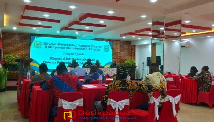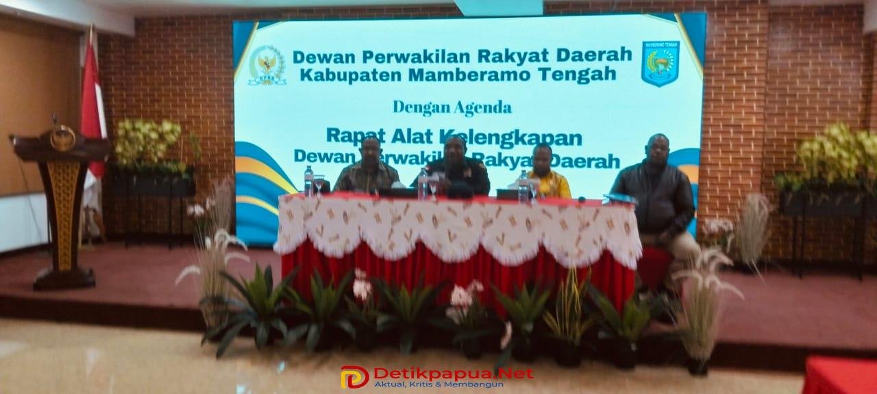Wamena, DetikPapua.Net – Dewan Perwakilan Rakyat Daerah (DPRD) Kabupaten Mamberamo Tengah menggelar Rapat Alat Kelengkapan (Komisi & Fraksi) pada 20 Agustus 2025 di Hotel Gren Balim, Wamena. Rapat ini dipimpin langsung oleh Pimpinan DPRD Kabupaten Mamberamo Tengah, yaitu Ketua DPRD Piter Togodly, S.Ip, Wakil Ketua I Leonard Doga, SE, dan Wakil Ketua II Waima Endambia, serta didampingi Sekretaris Dewan (Sekwan) Orten Yikwa, SE.