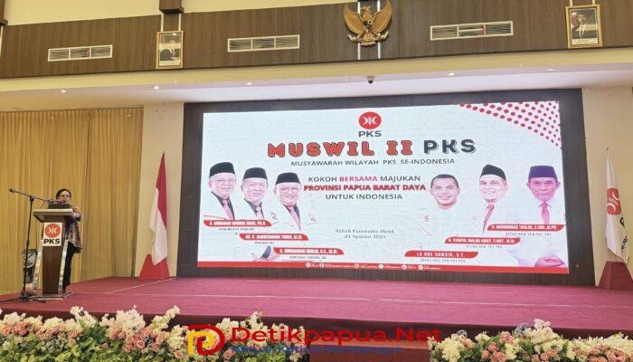 Sorong, Detikpapua.Net – Dewan Pengurus Wilayah Partai Keadilan Sejahtera (DPW PKS) Provinsi Papua Barat Daya, menggelar kegiatan Musyawarah Wilayah (Muswil) ke-2, di Rilych Panorama Hotel, Kota Sorong, Minggu (24/08/2025). Pembukaan Muswil dihadiri Gubernur Papua Barat Daya Elisa Kambu, S.Sos yang diwakili Kepala Badan Kesatuan Bangsa dan Politik (Kesbangpol) Dr. Sellvyana Sangkek, SE.,M.Si.
