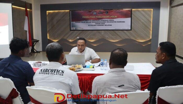 Teminabuan, Detikpapua.Net – Dukung langkah strategis Polri dalam menyelamatkan generasi muda dari ancaman narkoba, Polres Sorong Selatan telah menerima kunjungan oleh Tim Puslitbang (Pusat Penelitian dan Pengembangan) Polri dalam melaksanakan kegiatan penelitian bertajuk “Peran Polri dalam Menanggulangi Kejahatan Narkoba demi Menyelamatkan Generasi Emas” bertempat di Aula Sembra Mapolres Sorong Selatan. Selasa (26/8/2025).