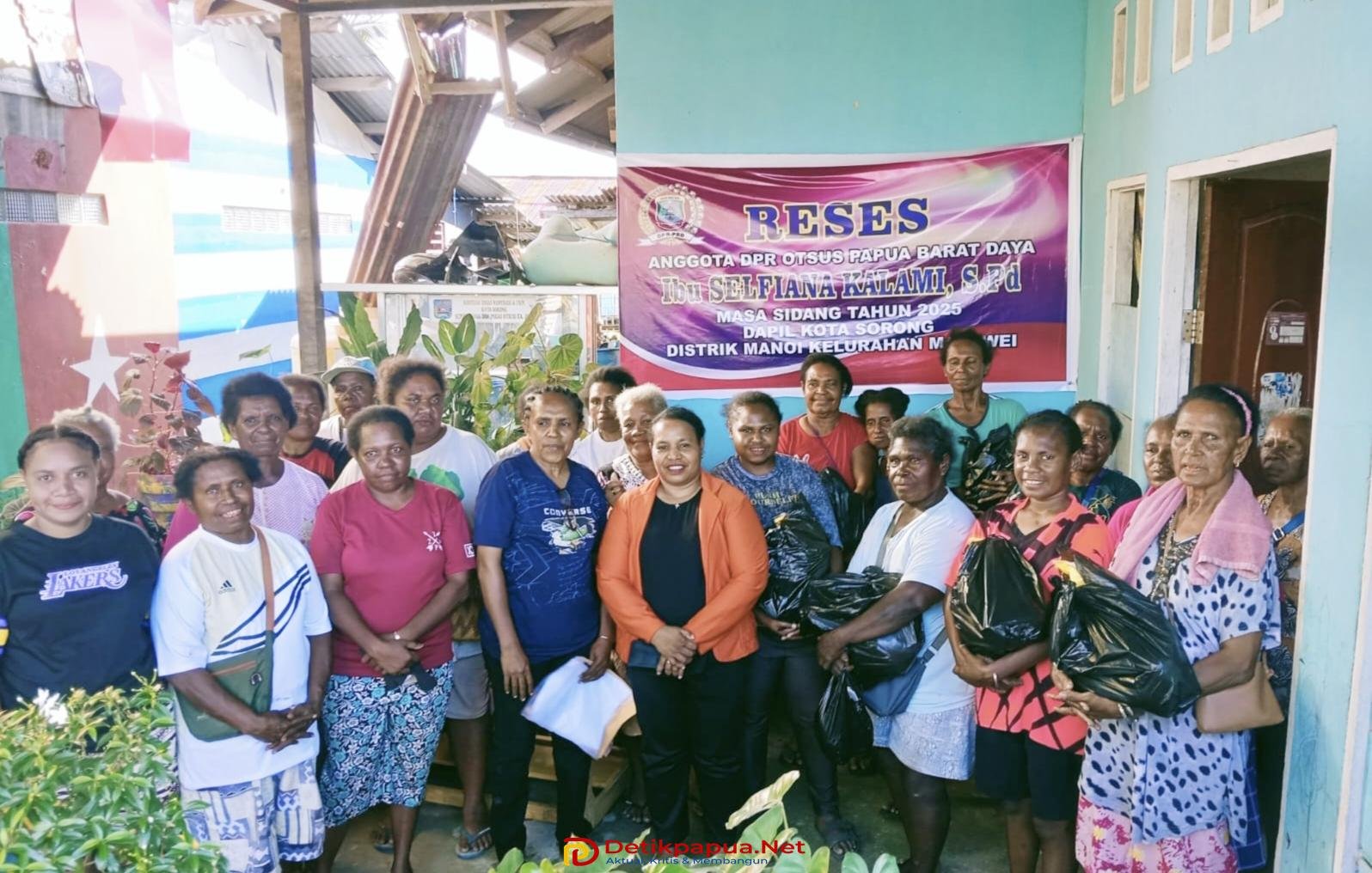 Kegiatan reses bersama para nelayan dan Mama-mama Papua penjual di Pasar Jembatan Puri Kota Sorong diakhiri dengan foto bersama dan pembagian bingkisan berupa Sembako oleh Anggota DPR PBD Selfiana Kalami kepada para peserta yang hadir.