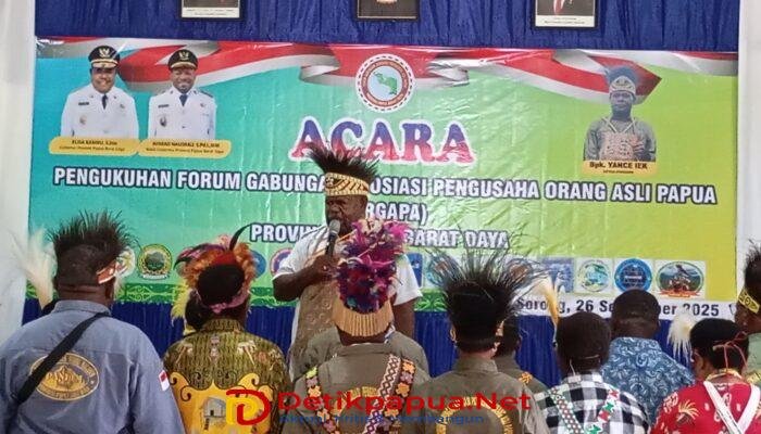 Sorong, Detikpapua.Net – Gubernur Papua Barat Daya (PBD) Elisa Kambu, S.Sos secara resmi mengukuhkan kepengurusan Forum Gabungan Asosiasi Pengusaha OAP (FORGAPA) Provinsi Papua Barat Daya, di Aula Honai Luxio Hotel, Jumat (26/09/2025).