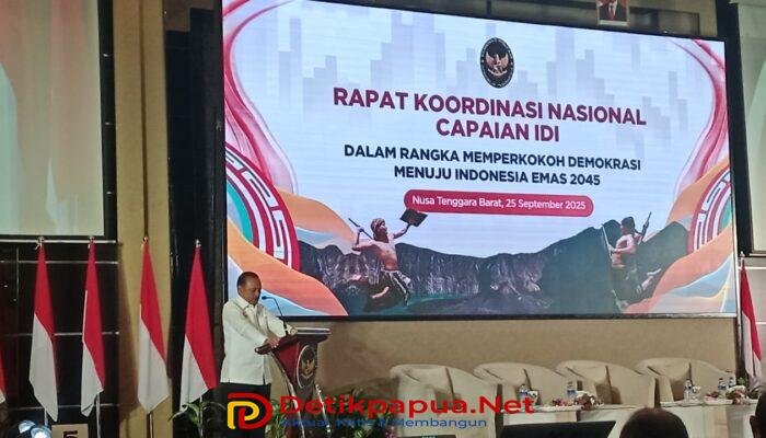 Sorong, Detikpapua.Net – Kepala Badan Kesatuan Bangsa dan Politik (Kesbangpol) Provinsi Papua Barat Daya Dr. Sellvyana Sangkek, SE.,M.Si menghadiri sekaligus menyampaikan pemaparan terkait kondisi demokrasi di Provinsi Papua Barat Daya, dalam kegiatan Rapat Koordinasi Nasional (Rakornas) Capaian Indeks Demokrasi Indonesia (IDI) yang berlangsung di Mataram, Nusa Tenggara Barat (NTB) 25 September 2025.