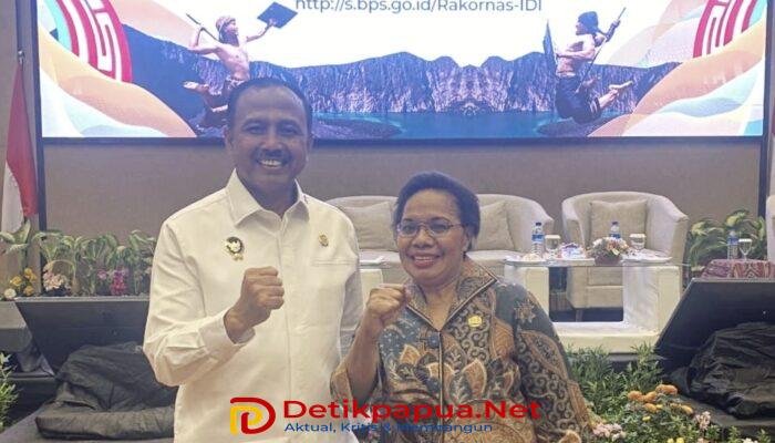 Kepala Badan Kesatuan Bangsa dan Politik (Kesbangpol) Provinsi Papua Barat Daya Dr. Sellvyana Sangkek, SE.,M.Si foto bersama Deputi Poldagri Kemenko Polkam, Mayjen TNI Dr. Heri Wiranto, S.E.,MM.,M.Tr (Han) dalam kegiatan Rakornas IDI yang berlangsung di Mataram, Nusa Tenggara Barat (NTB) 25 September 2025. Foto/Yohanes Sole