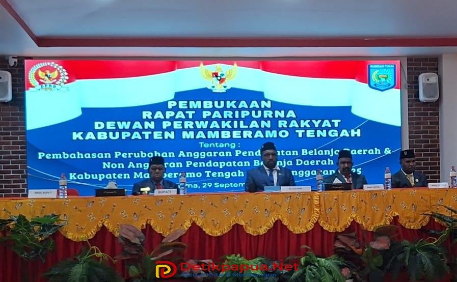 Wamena, DetikPapua.net – Dewan Perwakilan Rakyat Daerah (DPRD) Kabupaten Mamberamo Tengah menggelar rapat paripurna pembahasan Perubahan Anggaran Pendapatan dan Belanja Daerah (APBD-P) serta Non Anggaran Pendidikan dan Belanja Daerah Tahun Anggaran 2025.