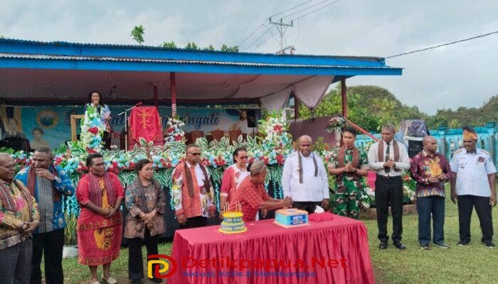 Perayaan yang dipusatkan di lapangan Sekolah SD YPK Mubarak Sondrofoyo, Kampung Sawiat, Distrik Sawiat ini dirangkaikan dengan acara peletakan batu pertama pembangunan Rumah Lonceng Gereja.