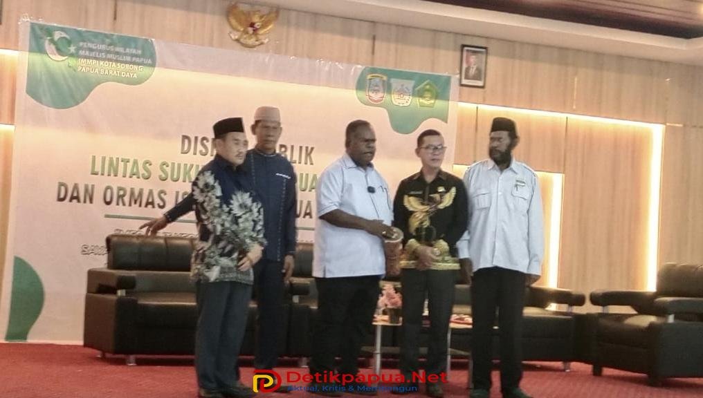 Sorong, Detikpapua.Net – Gubernur Papua Barat Daya Elisa Kambu, S.Sos menghadiri sekaligus membuka secara resmi kegiatan Diskusi Publik Lintas Suku, Adat Papua Muslim dan Ormas Islam se-Papua Barat Daya yang digelar di Kota Sorong, Sabtu (04/10/2025).
