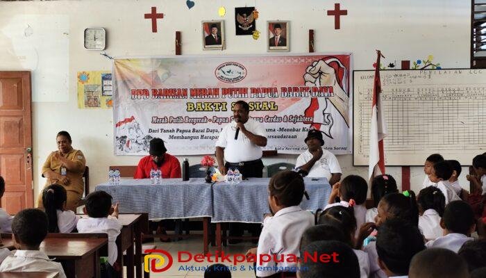 “Ini merupakan salah satu wujud kecil dari kami DPD Barisan Merah Putih di sejumlah sekolah yang ada di Papua Barat Daya,” ungkap Alfons Kambu saat usai melaksanakan sosialisasi wawasan kebangsaan di SD YPK Elim Malanu, Kota Sorong, Selasa (7/10/2025).