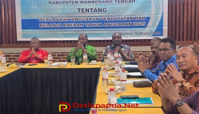 Wamena, DetikPapua.Net — Pemerintah Kabupaten Mamberamo Tengah (Mamteng) mengikuti kegiatan Evaluasi Rancangan Anggaran Pendapatan dan Belanja Daerah Perubahan (RAPBD-P) Tahun Anggaran 2025 bersama Tim Verifikator Provinsi Papua Pegunungan, Kamis (9/10/2025).