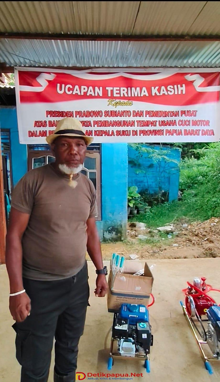 Sorong, Detikpapua.Net – Pemerintah pusat kembali memberikan bantuan kepada para kepala suku di provinsi Papua Barat Daya. Kali ini bantuan berupa peralatan dan tempat pencucian motor diberikan kepada kepala suku Maya Matius Samagita. Bantuan tersebut diterima Matius Samagita pada senin 20 Oktober 2025.