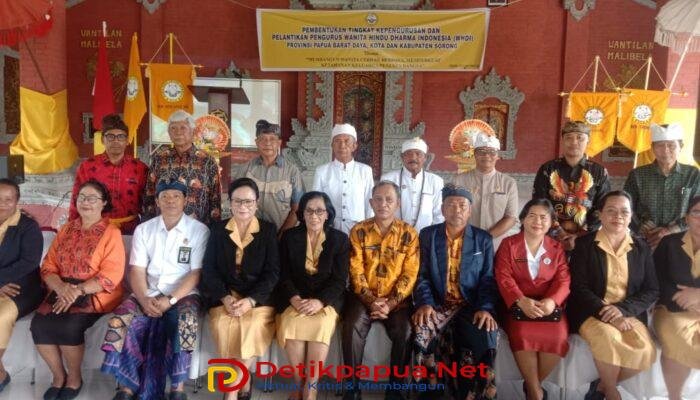 Sorong, Detikpapua.Net – Pengurus Wanita Hindu Dharma Indonesia (WHDI) Provinsi Papua Barat Daya, Kota Sorong dan Kabupaten Sorong Periode 2025–2030 resmi dilantik, Sabtu (25/10/2025). Acara pelantikan yang dirangkaikan dengan pembekalan bagi pengurus tersebut berlangsung di Wantilan Matbele, Pura Jagat Bhuana Ketik Kota Sorong, Provinsi Papua Barat Daya.
