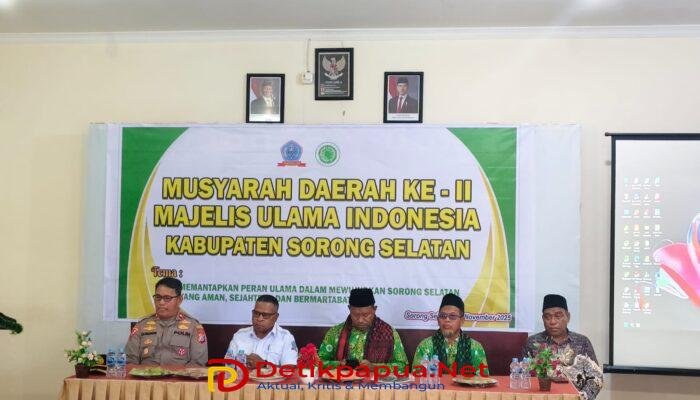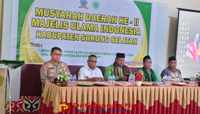 Sorong Selatan, Detikpapua.Net – Wakil Bupati Sorong Selatan, Yohan Bodory, S.Sos.,M.Tr.Ap turut menghadiri acara pembukaan Musyawarah Daerah (Musda) II Majelis Ulama Indonesia (MUI) Kabupaten Sorong Selatan yang digelar di Teminabuan, Rabu (05/11/2025).
