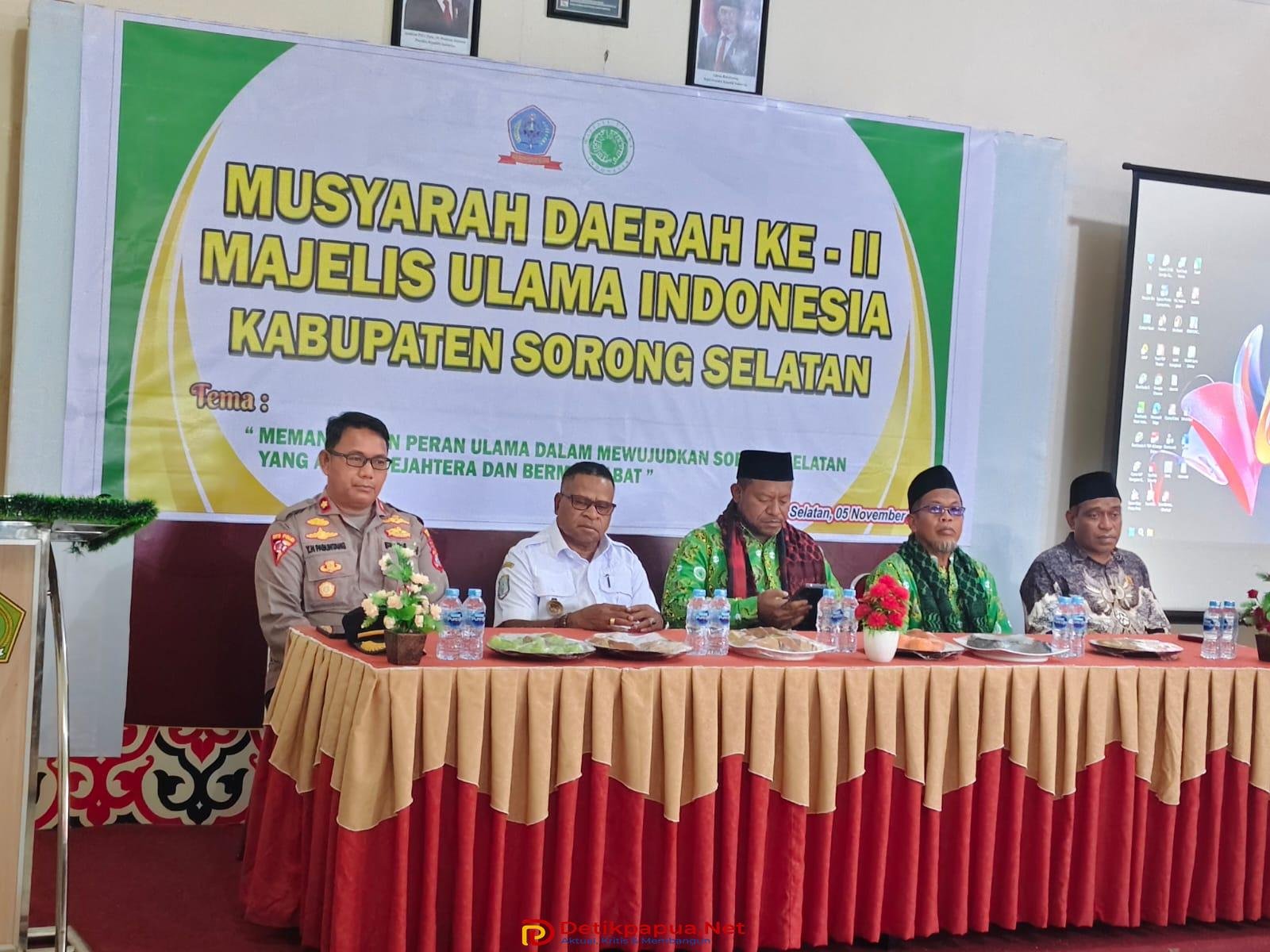 Untuk diketahui Musda II MUI Sorong Selatan kali ini mengusung Tema “Memantapkan Peran Ulama Dalam Mewujudkan Sorong Selatan yang Aman, Sejahtera dan Bermartabat”. Kegiatan dibuka oleh Ketua Sementara MUI Papua Barat Daya sekaligus Wakil Gubernur Papua Barat Daya Ahmad Nausrau, S.Pdi, dengan agenda pemilihan kepengurusan baru.