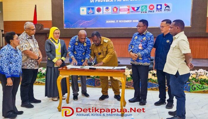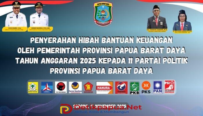 Dorong, Detikpapua.Net – Pemerintah Provinsi Papua Barat Daya melakukan penyerahan hibah bantuan keuangan bagi 11 Partai Politik (Parpol) pemenang Pemilu di Provinsi Papua Barat Daya. Acara penyerahan berlangsung di ruang rapat Lantai III Kantor Gubernur Papua Barat Daya, Senin (17/11/2025).