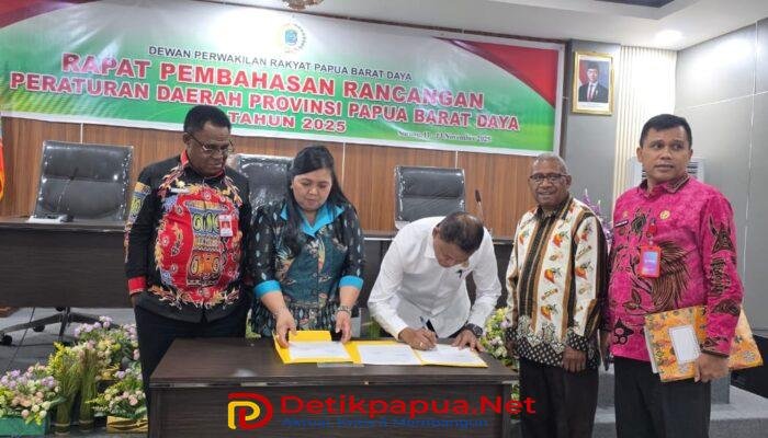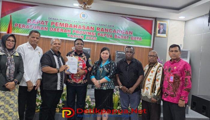 Sorong, Detikpapua.Net – Pemerintah Provinsi Papua Barat Daya (PBD) Bersama DPR telah menyelesaikan tahapan pembahasan pembicaraan Tingkat I, terkait sejumlah Rancangan Peraturan Daerah (Ranperda) inisiatif DPR dan usulan pemerintah daerah dalam rapat yang digelar di Kantor DPR PBD, Jalan Pendidikan Km 8, Kota Sorong Provinsi Papua Barat Daya, 11-13 November 2025.