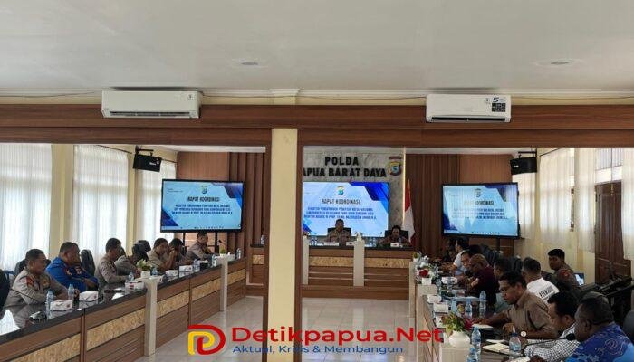 Dalam Rakor yang berlangsung di Aula Mapolda Papua Barat Daya, Kamis (20/11/2025) ini Kaban Kesbangpol Dr. Sellvyana Sangkek memaparkan sejumlah hal yang berkaitan dengan komitmen pemerintah Provinsi Papua Barat Daya dalam kegiatan kunjungan Menteri agama dimaksud.
