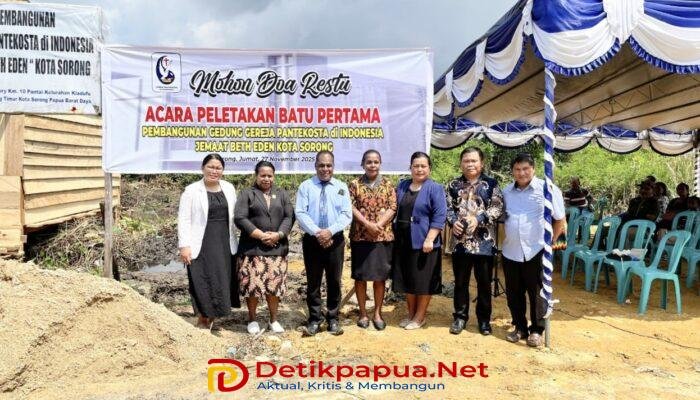 Sorong, Detikpapua.Net – Pembangunan Gedung Gereja Pantekosta di Indonesia (GPDI) Jemaat Beth Eden Kota Sorong, resmi dimulai usai dilakukannya acara Peletakan Batu Pertama Pembangunan Gedung Gereja tersebut pada Jumat (27/11/2025).