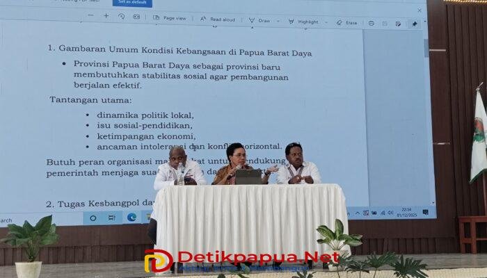Ia pun mengawali pemaparannya dengan menjelaskan gambaran Umum Kondisi Kebangsaan di Papua Barat Daya, dimana Provinsi Papua Barat Daya sebagai provinsi baru membutuhkan stabilitas sosial agar pembangunan berjalan efektif. Tantangan utamanya yakni dinamika politik lokal, isu sosial-pendidikan, ketimpangan ekonomi, ancaman intoleransi dan konflik horizontal. Sehingga membutuhkan peran organisasi masyarakat untuk mendukung pemerintah menjaga suasana aman dan konstruktif.