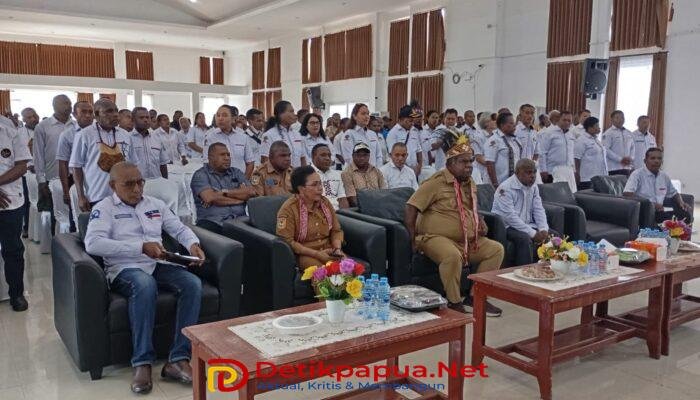 Sorong, Detikpapua.Net – Gubernur Papua Barat Daya Elisa Kambu, S.Sos didampingi Kepala Badan Kesatuan Bangsa dan Politik (Kesbangpol) Dr. Sellvyana Sangkek, SE.,M.Si menghadiri acara pelantikan pengurus dan Rapat Kerja (Raker) I Lembaga Pemberdayaan Elang Center (LPEC) Provinsi Papua Barat Daya, di Kota Sorong, Selasa (02/12/2025).