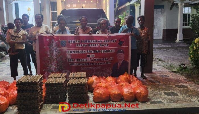 Sorong, Detikpapua.Net – Dalam rangka membantu masyarakat ditengah kesulitan ekonomi pasca penerapan kebijakan efisiensi anggaran oleh Pemerintah Pusat, serta dalam rangka menyambut perayaan Natal dan Tahun Baru, Wakil Ketua II DPR Papua Barat Daya Fredrik F.A. Marlisa, ST memberikan bantuan berupa paket sembako kepada masyarakat di Kota Sorong.