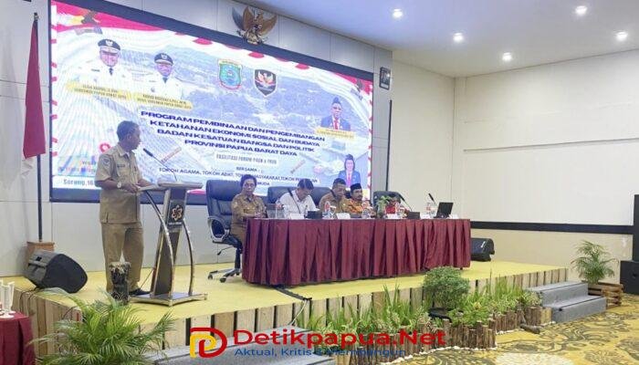 Sorong, Detikpapua.Net – Badan Kesatuan Bangsa dan Politik (Kesbangpol) Provinsi Papua Barat Daya menggelar kegiatan sosialisasi pembentukan Tim Terpadu pencegahan, pemberantasan, penyalahgunaan dan peredaran gelap narkotika (P4GN) yang digelar di Vega Prime Hotel, Kota Sorong, Selasa (16/12/2025).
