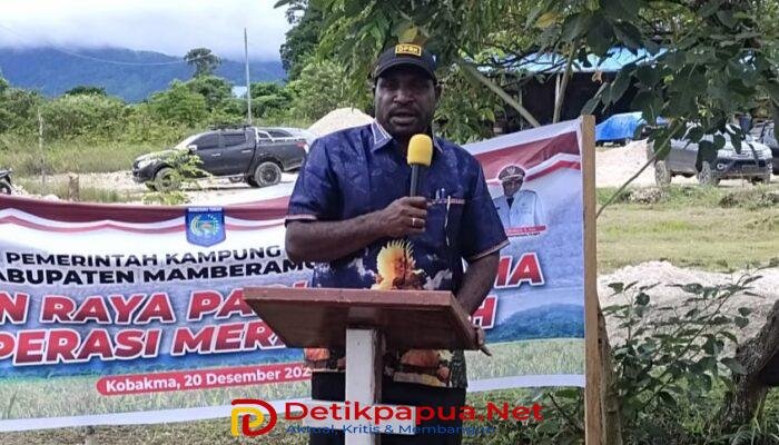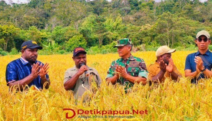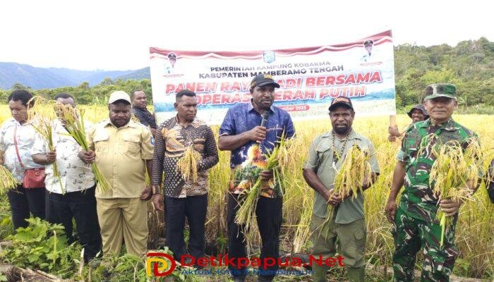 KOBAKMA, DetikpapuaNet— Kegiatan Panen Raya Padi Ladang sekaligus pengguntingan pita Rumah Jabatan Kepala Kampung Desa Kobakma berlangsung dalam suasana penuh kekerabatan dan kekeluargaan. Kegiatan ini diinisiasi oleh Wakil Bupati Kabupaten Mamberamo Tengah (Mamteng), Itaman Tago, S.Sos, didampingi Ketua DPRK Mamberamo Tengah, Piter Togodly, S.Ip, Kepala Dinas Koperasi, Pertanian dan Perumahan, Danramil Kobakma, serta Wakil Ketua TP PKK Kabupaten Mamteng. Sabtu, (19/12/2025)