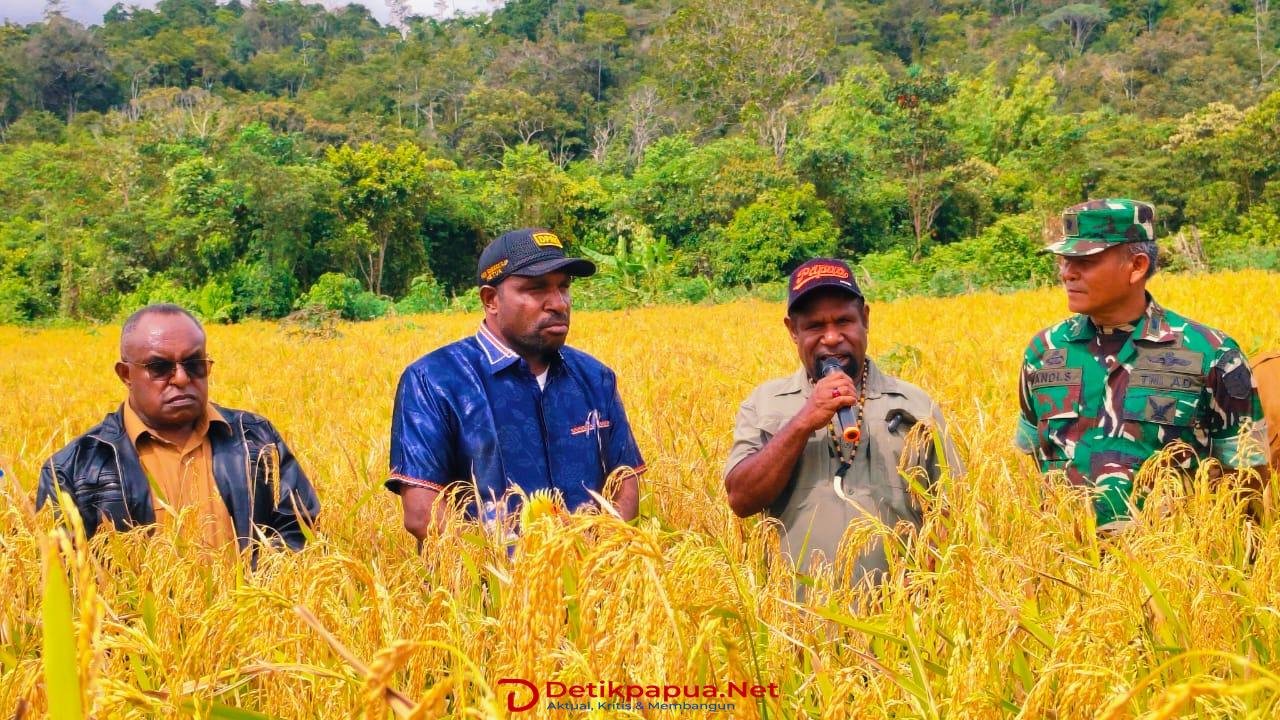 KOBAKMA, DetikpapuaNet— Kegiatan Panen Raya Padi Ladang sekaligus pengguntingan pita Rumah Jabatan Kepala Kampung Desa Kobakma berlangsung dalam suasana penuh kekerabatan dan kekeluargaan. Kegiatan ini diinisiasi oleh Wakil Bupati Kabupaten Mamberamo Tengah (Mamteng), Itaman Tago, S.Sos, didampingi Ketua DPRK Mamberamo Tengah, Piter Togodly, S.Ip, Kepala Dinas Koperasi, Pertanian dan Perumahan, Danramil Kobakma, serta Wakil Ketua TP PKK Kabupaten Mamteng. Sabtu, (19/12/2025)