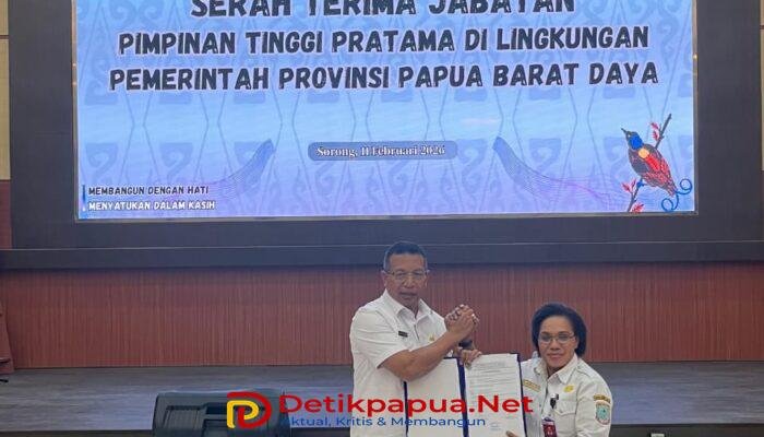 Sorong, Detikpapua.Net – Pucuk pimpinan pada Badan Kesatuan Bangsa dan Politik (Kesbangpol) Provinsi Papua Barat Daya resmi berganti usai dilakukan serah terima jabatan (Sertijab) dari Dr. Sellvyana Sangkek, SE.,M.Si selaku mantan kepala badan kepada pelaksana tugas (Plt), yang digelar pada Rabu (11/02/2026).