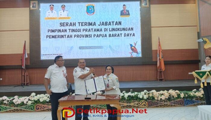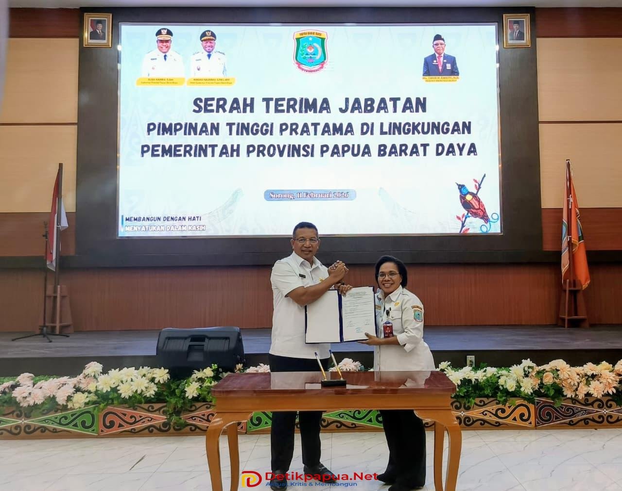 Sorong, Detikpapua.Net – Pucuk pimpinan pada Badan Kesatuan Bangsa dan Politik (Kesbangpol) Provinsi Papua Barat Daya resmi berganti usai dilakukan serah terima jabatan (Sertijab) dari Dr. Sellvyana Sangkek, SE.,M.Si selaku mantan kepala badan kepada pelaksana tugas (Plt), yang digelar pada Rabu (11/02/2026).