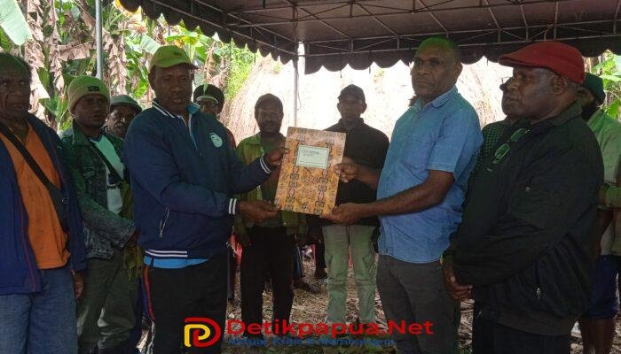 Kepala Suku Hubikosi Owiale Yakobus Kosi bersama delapan belas Klen menyerahkan aspirasi dan pernyataan sikap kepada Majelis Rakyat Papua (MRP) Papua Pegunungan. Selasa, (17/02/2026) Foto/Yohanes Kossay