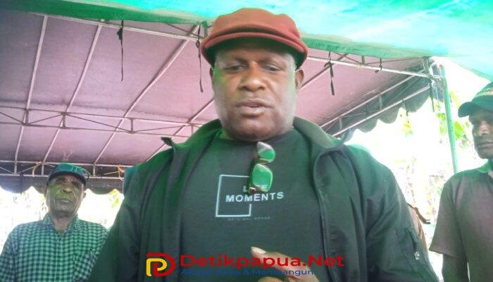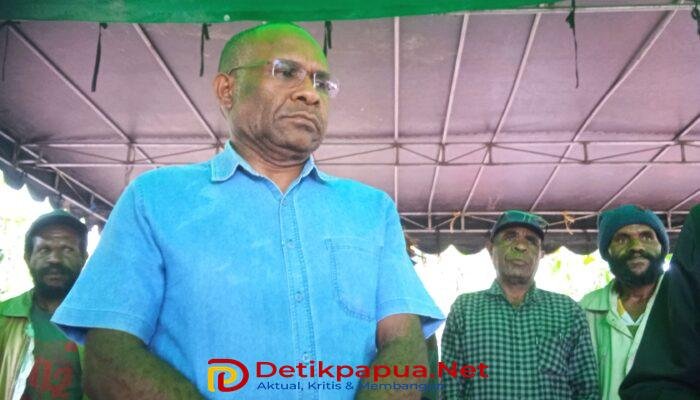 Ketua II Majelis Rakyat Papua (MRP) Provinsi Papua Pegunungan, Beny Mawel, usai menerima aspirasi dan menyatakan dukungan kepada Masyarakat adat Huwulama. Selasa, (17/02/2026). Foto/Yohanes Kossay.