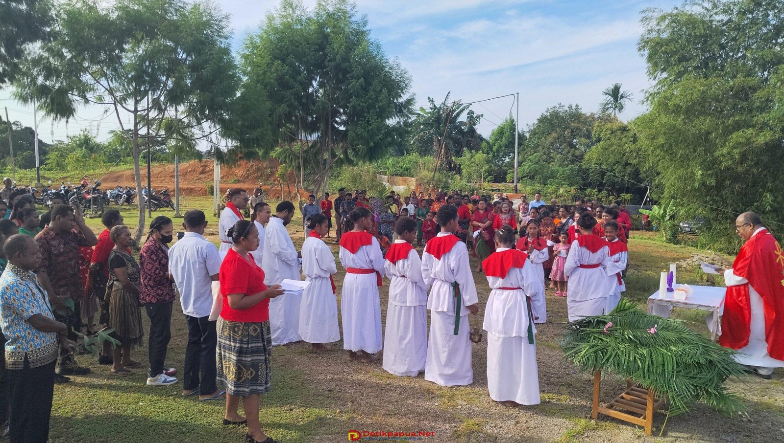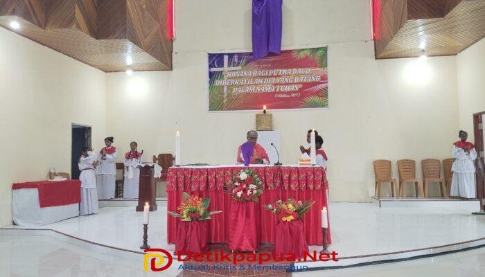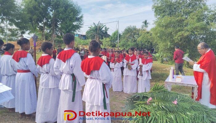 SORONG, DetikPapuaNet—Perayaan Minggu Palma di Stasi Santo Yosef Freinademetz, Kota Sorong, berlangsung khidmat dan penuh penghayatan pada Minggu (29/3/2026), dimulai pukul 08.10 WIT. Ratusan umat Katolik memadati gereja untuk mengikuti misa yang menandai awal Pekan Suci. Bertempat di Gereja Katolik Stasi Santo Yosef Freinademetz, Kota Sorong.