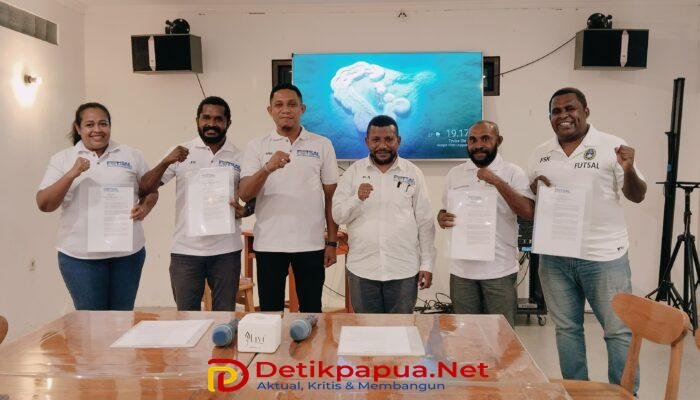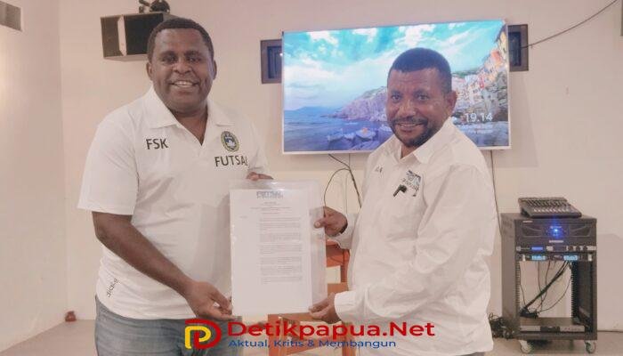 Sorong, Detikpapua.Net – Plt Ketua Asosiasi Futsal Provinsi (AFP) Papua Barat Daya Bartholomeus Asem, S.Pi.MP secara resmi menyerahkan Surat Keputusan (SK) bagi ketua Asosiasi Futsal Kabupaten/Kota (AFK) di 5 Kabupaten 1 Kota se-Provinsi Papua Barat Daya.