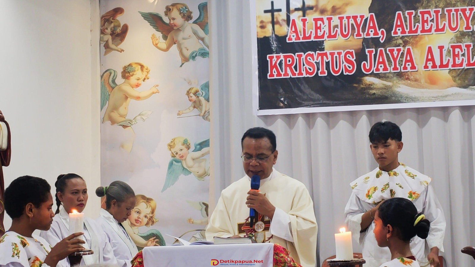 KOTA SORONG, DetikPapuaNet— Umat Katolik di Stasi Stasi Santa Maria Magdalena Bambu Kuning merayakan Hari Raya Paskah dengan penuh khidmat pada Minggu (5/4/2026). Perayaan Ekaristi ini mengangkat tema “Aleluya Aleluya Kristus Jaya Aleluya” dan Perayaan Ekaristi ini dipimpin oleh Pastor Yohanes Gregorius Arkian Wuwur, SVD.