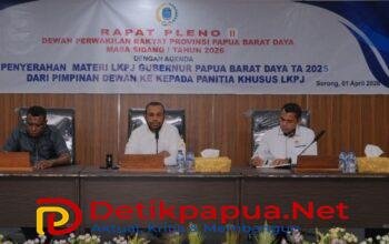 Sorong, Detikpapua.Net – Panita Khusus (Pansus) LKPJ Gubernur Papua Barat Daya (PBD) Tahun Anggaran 2025 DPR PBD melaksanakan agenda RDP (Rapat Dengar Pendapat) dengan Biro Pemerintahan, Setda Papua Barat Daya di Ruang Sidang Utama, Kantor DPR PBD Jalan Pendidikan, Km 8 Kota Sorong, Kamis (09/04/2026).