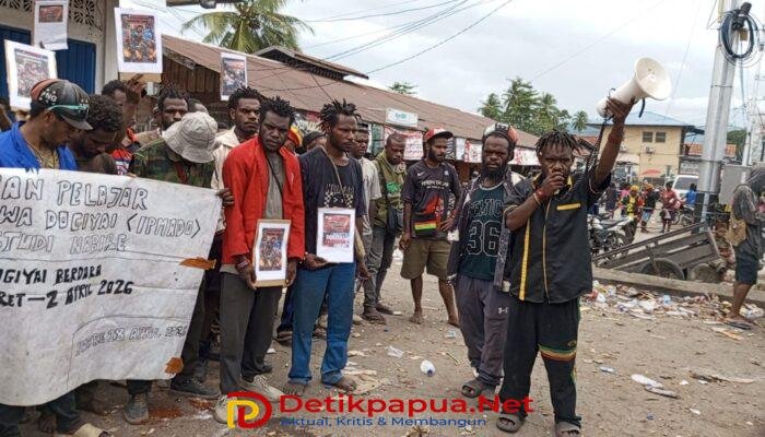 NABIRE, DetikPapuaNet— Ikatan Pelajar Mahasiswa Dogiyai Kota Studi Nabire menggelar aksi mimbar bebas di Pasar Karang Tumaritis, Nabire, Sabtu (18/4/2026), sebagai bentuk protes dan desakan agar tragedi “Dogiyai Berdarah” pada 31 Maret–2 April 2026 segera diungkap secara terbuka.
